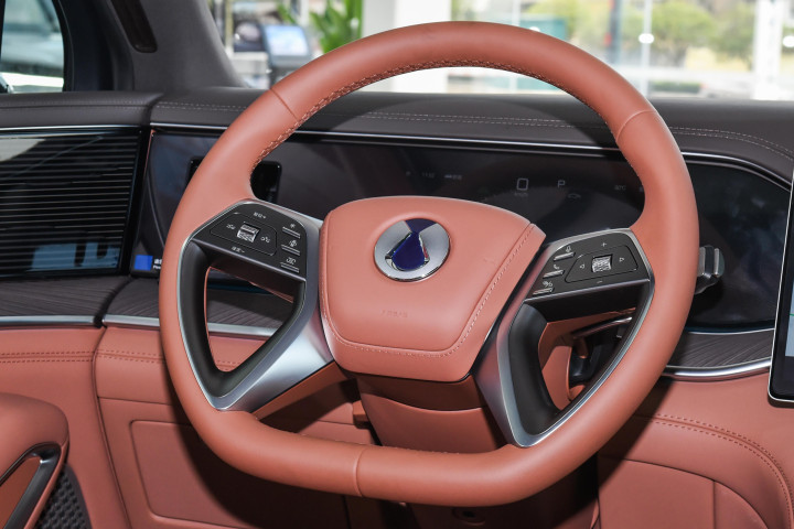 在软硬件协同层面,2026款腾势N9也进行了多项设计优化,例如软硬+高低可调悬挂、双腔空气悬挂、魔毯悬挂等配置均以标准形式搭载,这些配置的应用对车辆行驶质感与操控表现起到了辅助提升作用。同时,车辆配备的整体主动转向系统与坦克掉头功能,在优化操控感受的同时,也为车辆增添了一定的越野属性。从驾驶模式选择来看,除常规模式外,车辆新增了越野、雪地、赛道三种模式,能够应对不同路况与驾驶需求;电驱技术在动力系统中的融入,还使得舒适制动功能成为标准配置,这些细节设计为用户在出行过程中提供了更多体验空间。