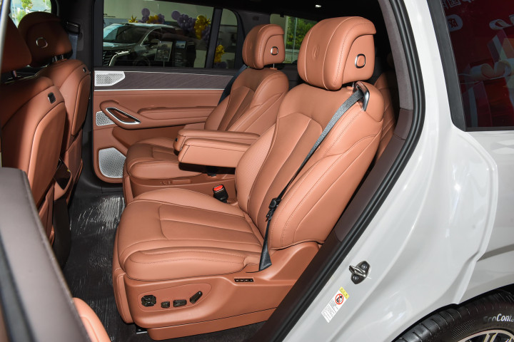 在前悬挂部分,车辆采用了双叉臂式独立悬挂,这种常见于高端车型的结构设计,能够对车辆横向刚度与转向精准度起到提升作用;后桥则搭配多连杆式独立悬挂,在保障操控稳定性的同时,也对乘坐舒适性进行了优化。这套悬挂组合为车辆动态性能提供了基础支撑,在日常城市道路行驶过程中,驾乘人员能够直观感受到车辆在滤震效果与行驶平顺性上的表现;而在面对非铺装路面或崎岖山路等复杂路况时,悬挂系统的适应能力也能够为驾驶者提供更从容的操控体验。此外,作为一款D级豪华SUV,车辆本身具备较高的离地间隙,同时提供电动伸缩踏板选装方案,部分高配车型则将其作为标准配置,这一设计不仅提升了上下车的便捷性,也进一步强化了车辆的通过性能,使得车辆在城市通勤与户外出行等不同场景中均能具备一定的适应性,为用户多元化用车需求提供了更多可能。
